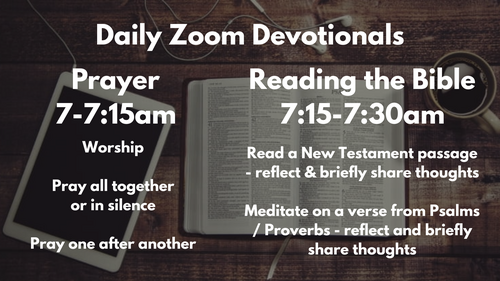 To encourage members of our churches to build these rhythms, we gather to pray and read the Bible together on Zoom every weekday between 7am and 7.30am.